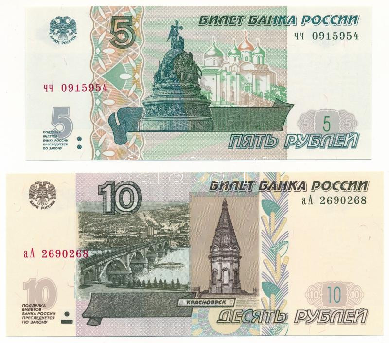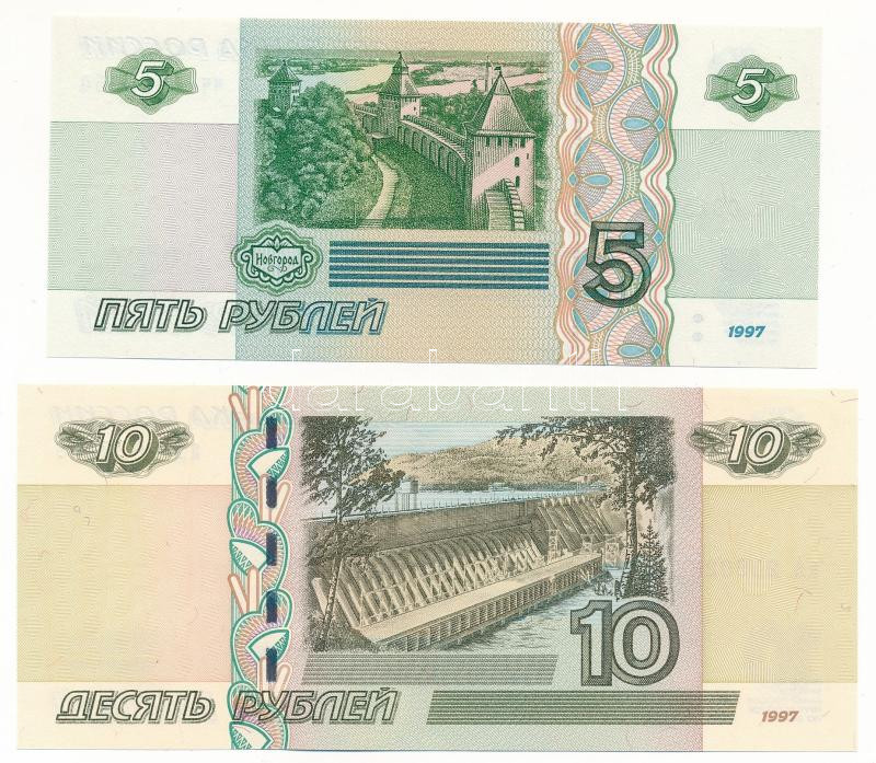 Russia 1997. 5 Rubel + 10 Rubel C:UN... https://www.darabanth.com/hu/518-Filatelia-kepeslap-numizmatika-mutargy-konyv-papirregiseg-ekszer-aukcio/524.0/Numizmatika/Kulfoldi-bankjegyek~889/Oroszorszag-1997-5R-plus-10R-T-UNCRussia-1997-5-Rubel-plus-10-Rubel-C-UNCKrause-P23267-P23268~II3515778