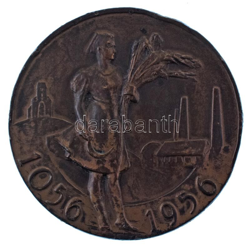 Czechoslovakia 1956. "Michalovce / 1056-1956" two-sided bronze commemorative medallion (70mm) C:XF