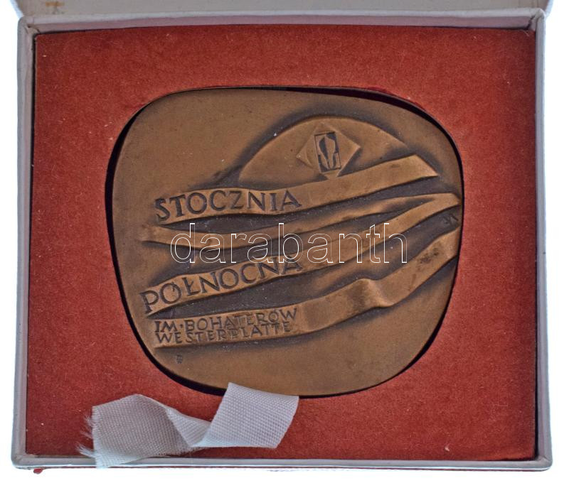 Lengyelország 1970 k. "Stocznia Polnocna Im bohaterow westerplatte - Északi hajógyár / B-400" kétoldalas bronz emlékérem eredeti tokban (43x50mm) T:AU