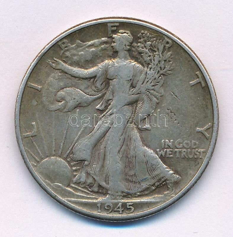 Leírás: Amerikai Egyesült Államok 1945. 1/2$ Ag "Walking Liberty" T:VF patina
