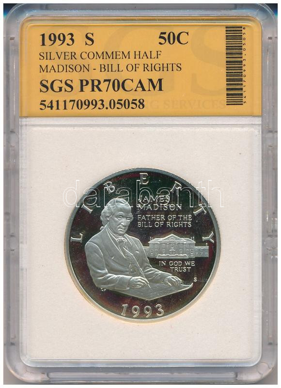 Amerikai Egyesült Államok 1993S 1/2$ Ag "Jogok nyilatkozata" bontatlan SGS műanyag tokban, tanúsítvánnyal T:PP