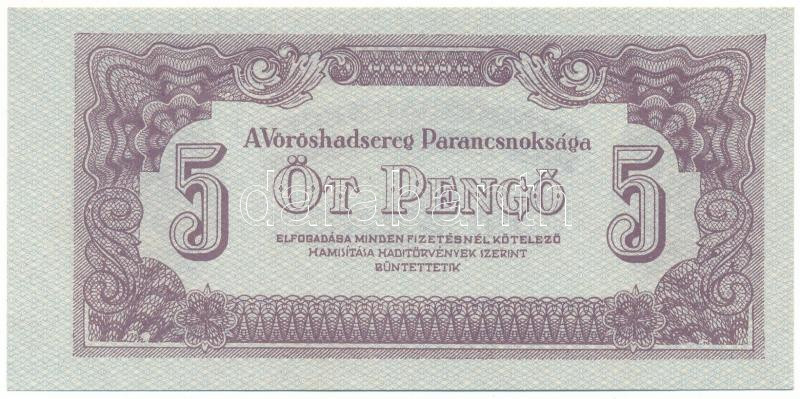 Adamo P43 https://www.darabanth.com/hu/518-Filatelia-kepeslap-numizmatika-mutargy-konyv-papirregiseg-ekszer-aukcio/524.0/Numizmatika/Magyar-bankjegyek~882/1944-5P-A-Voroshadsereg-Parancsnoksaga-T-AUAdamo-P43~II3477624