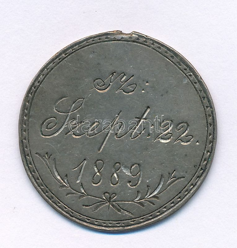1889. "Klára emlék / sz (született) szept. 22. 1889" gravírozott fém emlékmedál (27mm) T:XF fül letört
