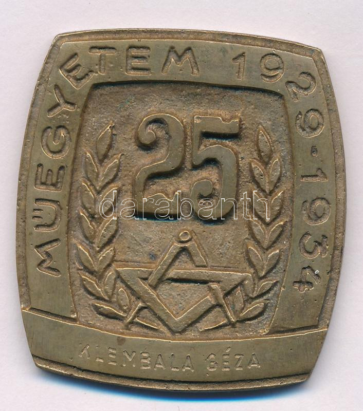 DN "Műegyetem 1929-1934 - 25" névre szóló, egyoldalas bronz emlékérem (47x43mm) T:XF