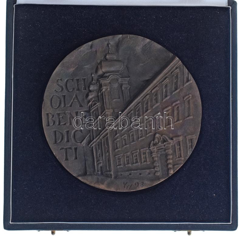 Kiss György (1943-2016) 1993. "Schola Benedicti" egyoldalas bronz plakett, dísztokban (108mm) T:AU