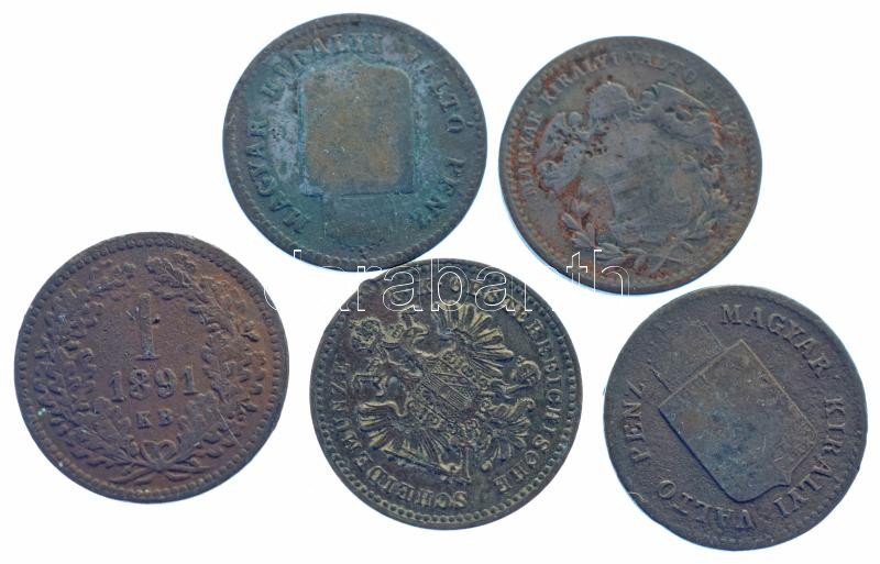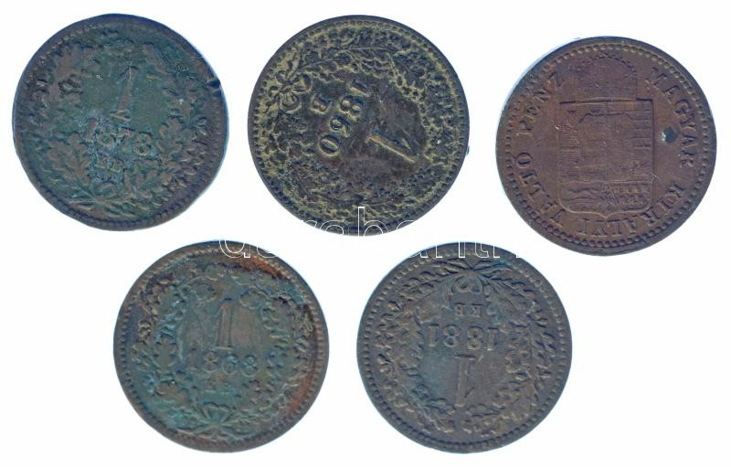 Leírás: 1860E 1kr Cu + 1868KB-1891KB 1kr Cu (4xklf) T:XF-F