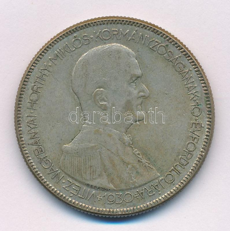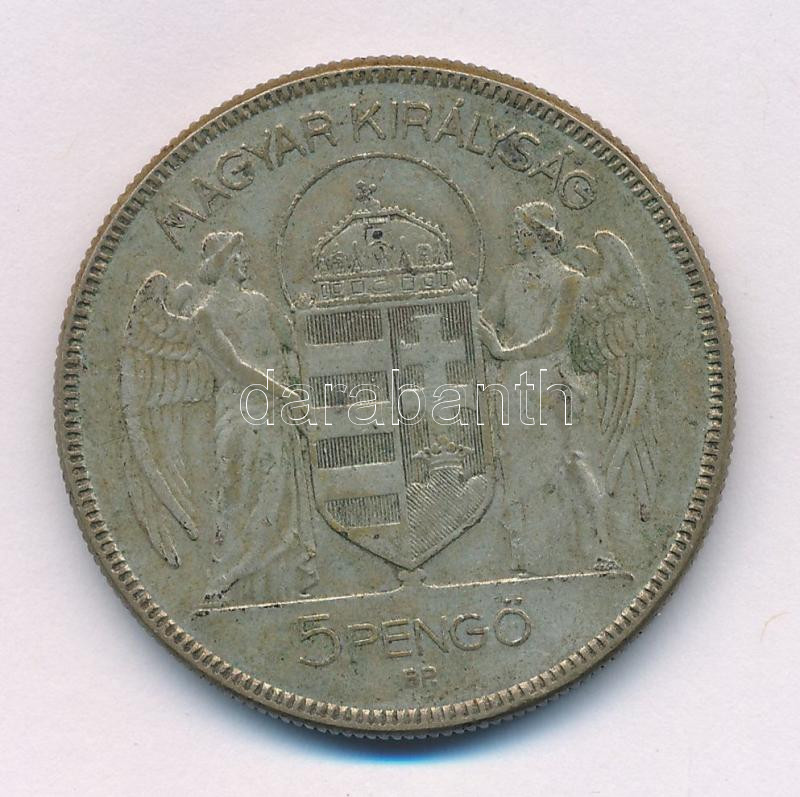 1930. 5P Ag "Horthy jobbra" hajas T:VF patina