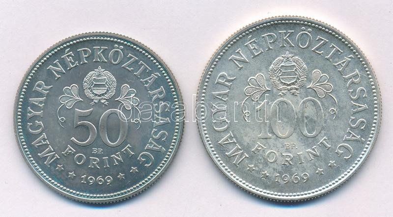 1969. 50Ft Ag + 100Ft Ag "Tanácsköztársaság" érmepár T:AU