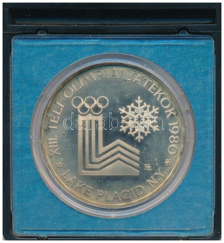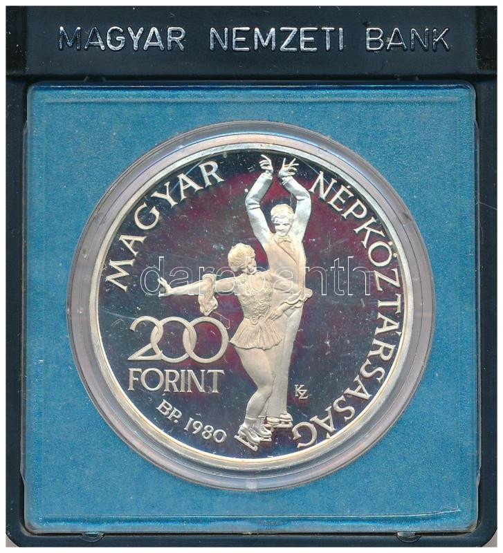 1980. 200Ft Ag "Téli olimpia - Lake Placid" sérült fekete műanyag "MNB" tokban T:UNC fo. (eredetileg PP)