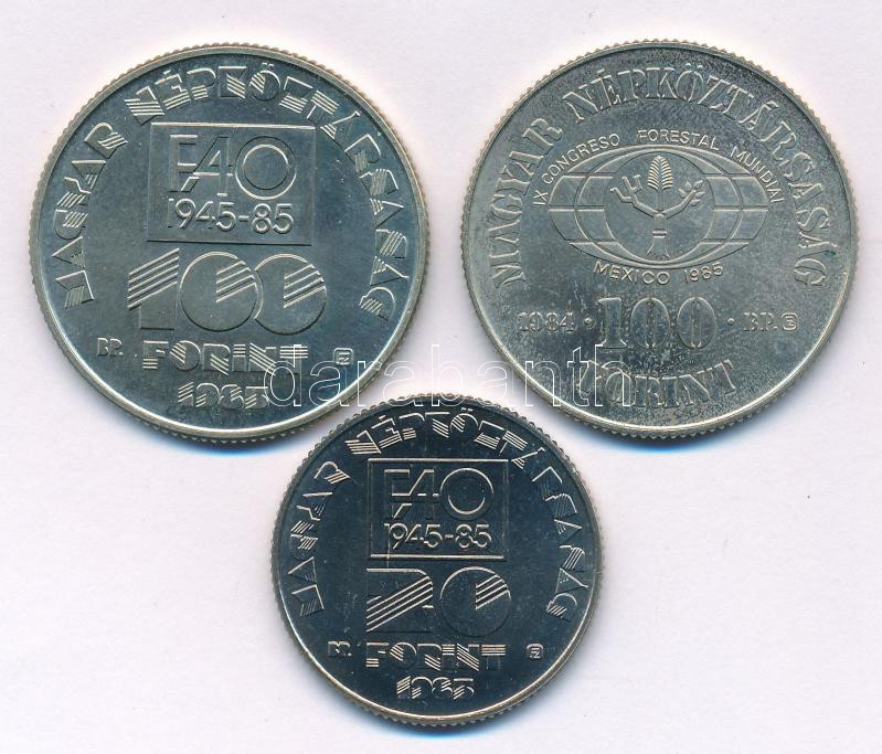 1984. 100Ft Cu-Ni "FAO - Ha kivágod, ültess is!" + 1985. 20Ft Cu-Ni "FAO" kapszulában + 100Ft Cu-Ni "FAO" T:BU-UNC