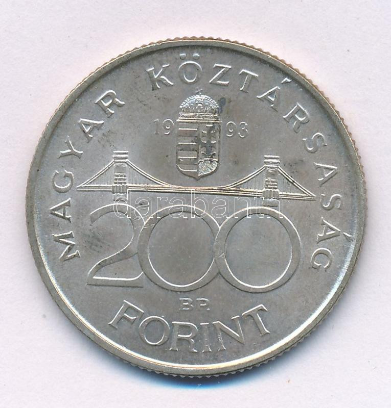 1993. 200Ft Ag "MNB" T:AU,XF patina