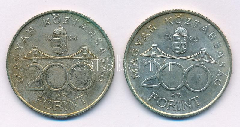 1994. 200Ft Ag "Deák" (2x) T:AU,XF patina