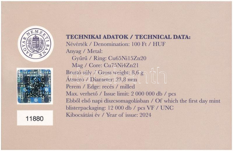 2024. 100Ft "100 éves a Magyar Nemzeti Bank" első napi veret díszcsomagolásban "01124" T:UNC
