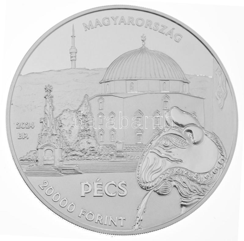 2024. 20.000Ft Ag "Baranya vármegye - Pécs" kapszulában, tanúsítvánnyal (40g/0,925/42mm) T:PP