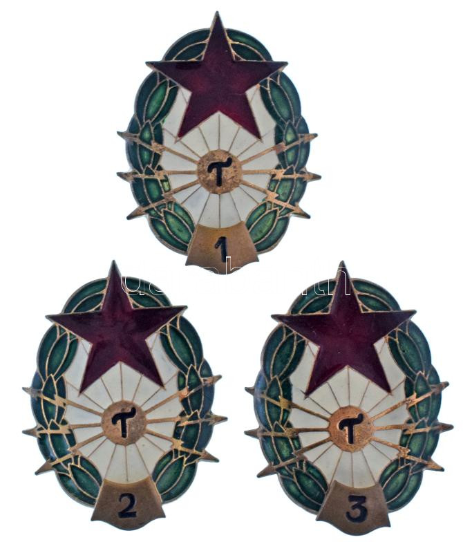 Leírás: 1970-1980 k. "Magyar Néphadsereg Távírász " zománcozott bronz osztályos jelvények 1., 2. és 3. fokozat (3xklf) T:AU