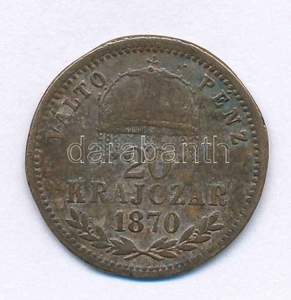1870GYF 20kr ezüstözött sárgaréz "Váltó Pénz" korabeli hamis(?) T:VF