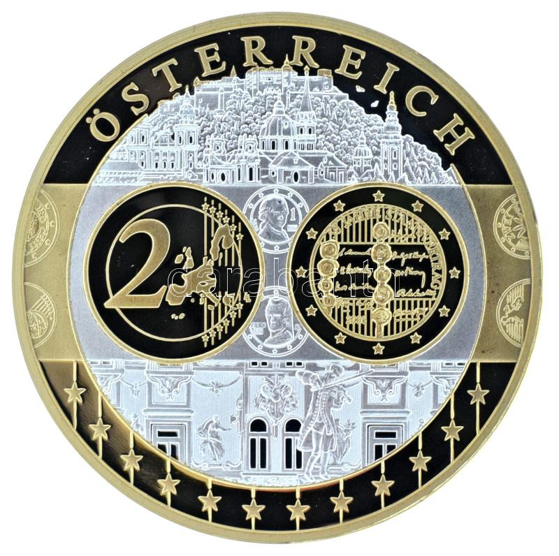 2002-2010 k. "Emlékérem az euróövezet országainak közös valutájáról - Ausztria" aranyozott, ezüstözött Cu-Ni emlékérem kapszulában, tanúsítvánnyal (35mm) T:PP