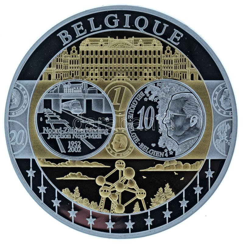 2002-2010 k. "Emlékérem az euróövezet országainak közös valutájáról - Belgium" aranyozott, ezüstözött Cu-Ni emlékérem kapszulában, tanúsítvánnyal (35mm) T:PP