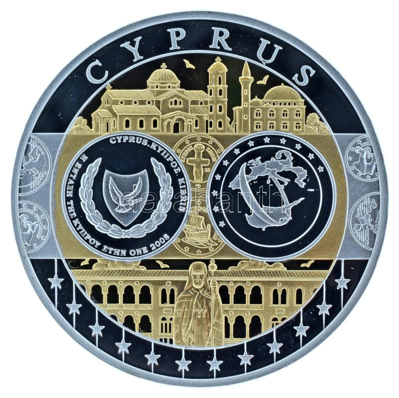 2002-2010 k. "Emlékérem az euróövezet országainak közös valutájáról - Ciprus" aranyozott, ezüstözött Cu-Ni emlékérem kapszulában, tanúsítvánnyal (35mm) T:PP