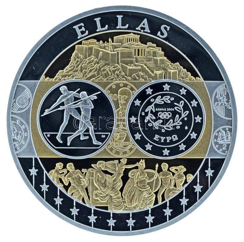 2002-2010 k. "Emlékérem az euróövezet országainak közös valutájáról - Görögország" aranyozott, ezüstözött Cu-Ni emlékérem kapszulában, tanúsítvánnyal (35mm) T:PP