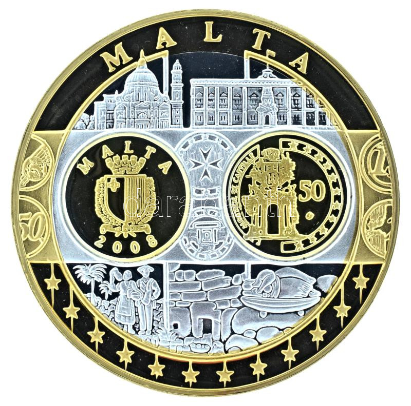 2002-2010 k. "Emlékérem az euróövezet országainak közös valutájáról - Málta" aranyozott, ezüstözött Cu-Ni emlékérem kapszulában, tanúsítvánnyal (35mm) T:PP