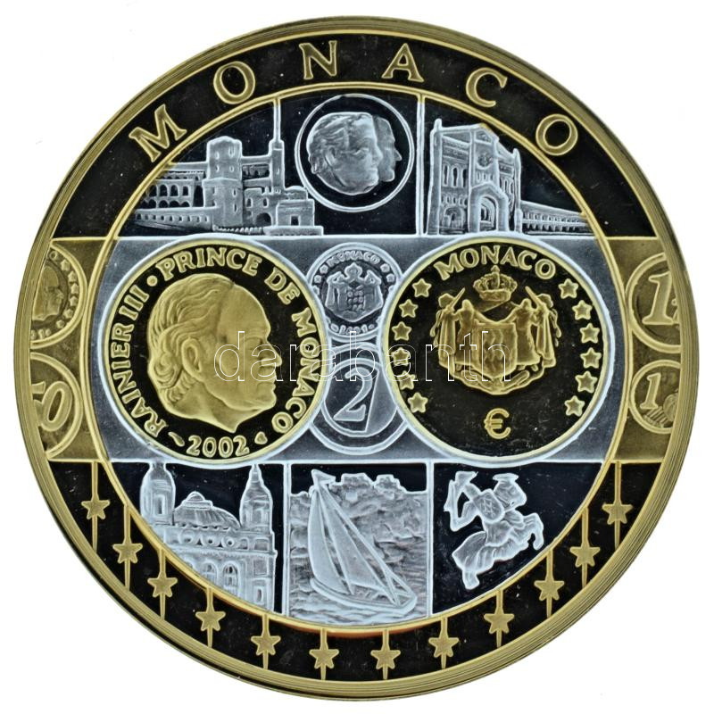 2002-2010 k. "Emlékérem az euróövezet országainak közös valutájáról - Monaco" aranyozott, ezüstözött Cu-Ni emlékérem kapszulában, tanúsítvánnyal (35mm) T:PP