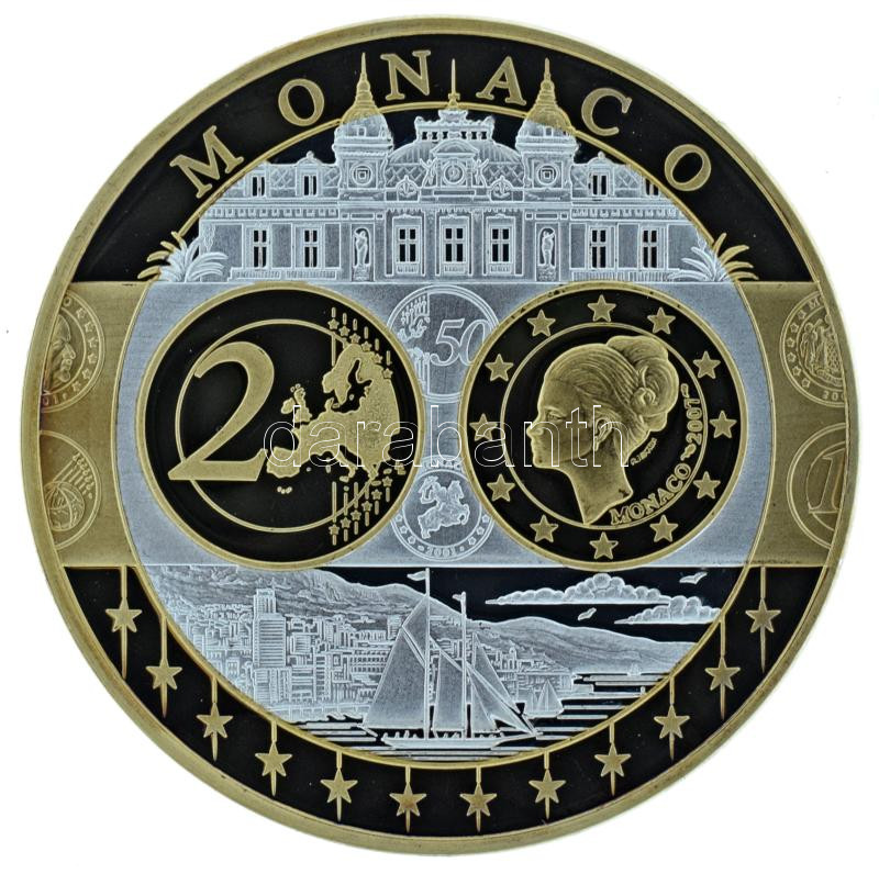 2002-2010 k. "Emlékérem az euróövezet országainak közös valutájáról - Monaco" aranyozott, ezüstözött Cu-Ni emlékérem kapszulában, tanúsítvánnyal (35mm) T:PP