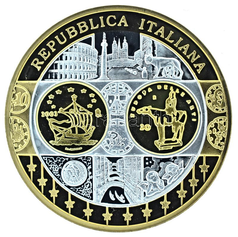 2002-2010 k. "Emlékérem az euróövezet országainak közös valutájáról - Olaszország" aranyozott, ezüstözött Cu-Ni emlékérem kapszulában, tanúsítvánnyal (35mm) T:PP