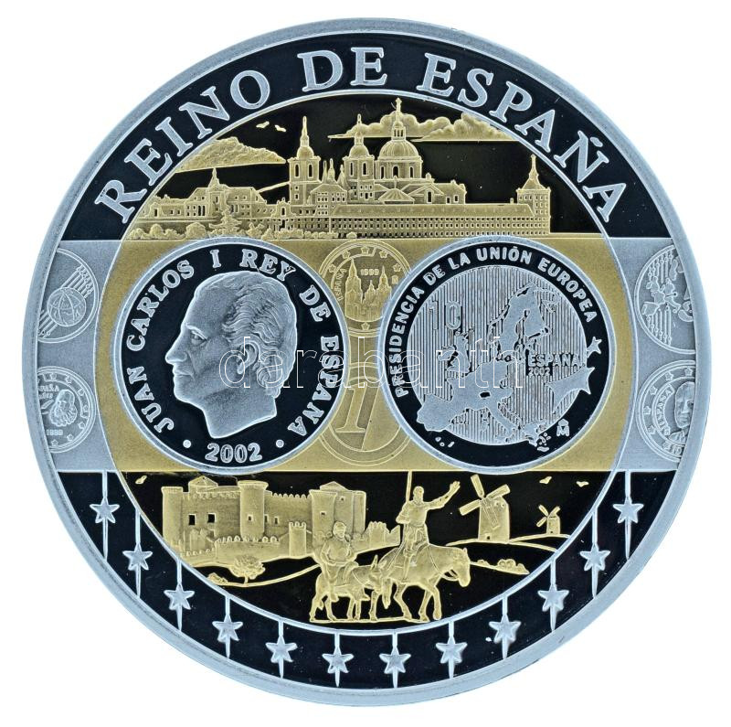2002-2010 k. "Emlékérem az euróövezet országainak közös valutájáról - Spanyolország" aranyozott, ezüstözött Cu-Ni emlékérem kapszulában, tanúsítvánnyal (35mm) T:PP