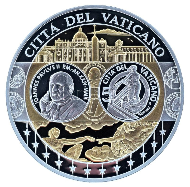 2002-2010 k. "Emlékérem az euróövezet országainak közös valutájáról - Vatikán" aranyozott, ezüstözött Cu-Ni emlékérem kapszulában, tanúsítvánnyal (35mm) T:PP