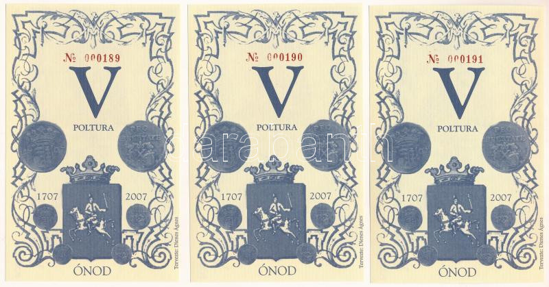 Leírás: 2007. Ónod V Poltura (3db) alacsony sorszámmal, sorszámkövetők "000189 - 000191" T:UNC