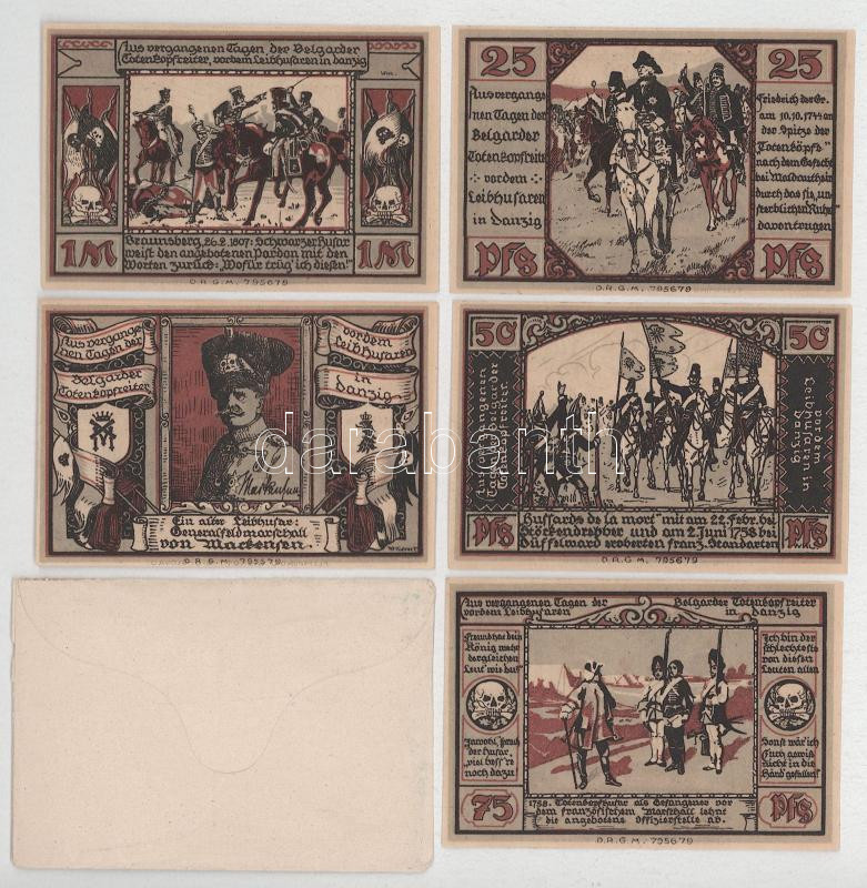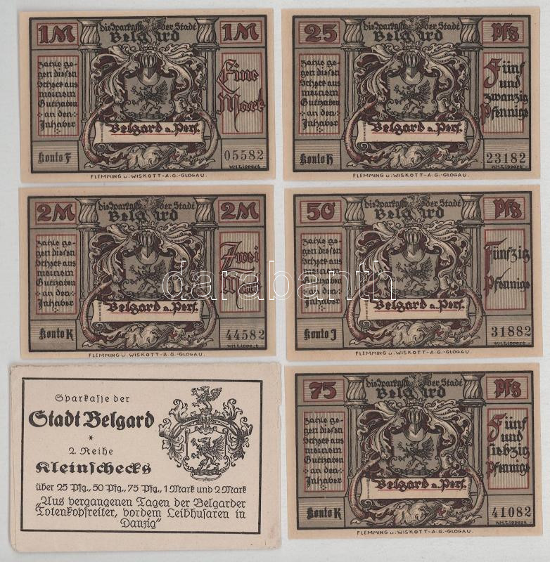 German Empire / Weimar Republic / Belgard (Bialogard) ~1920. 25 Pfennig + 50 Pfennig + 75 Pfennig + 1 Mark + 2 Mark (5xdiff), full serie, with original envelope C:AU