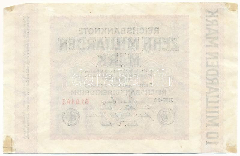 Leírás: Németország / Weimari Köztársaság 1923. 10.000.000.000M "019493" T:F kis szakadás, vágáshiba