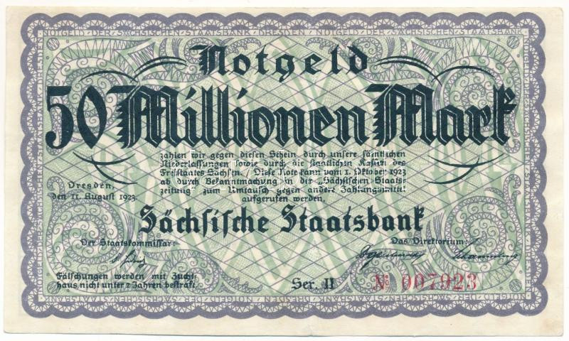 Germany / Weimar Republic / Dresden 1923. 50.000.000 Mark C:F fine paper