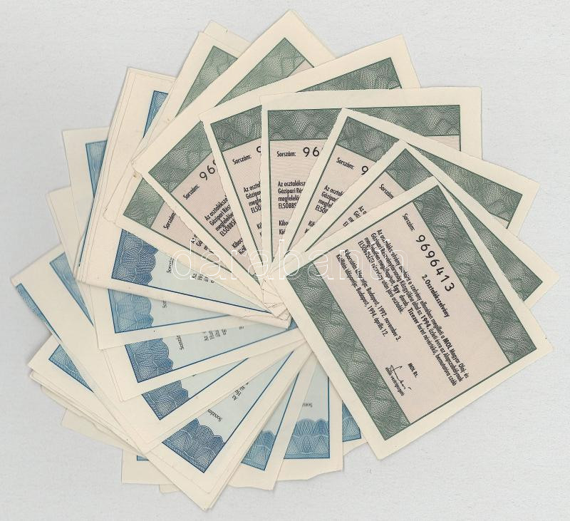 1994-1999. 37db osztalékszelvény az "Antenna Hungária" és a "MOL" rész... https://www.darabanth.com/hu/518-Filatelia-kepeslap-numizmatika-mutargy-konyv-papirregiseg-ekszer-aukcio/524.0/Numizmatika/Reszvenyek-es-sorsjegyek~880/1994-1999-37db-osztalekszelveny-az-Antenna-Hungaria-es-a-MOL-reszvenyeihez-T-AU~II3516352