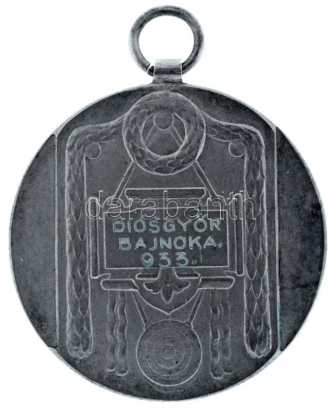 1933. Ezüstözött bronz díjérem, hátoldalán "Diósgyőr bajnoka 933" gravírozással, füllel. Szign.: Berényi (37mm) T:XF