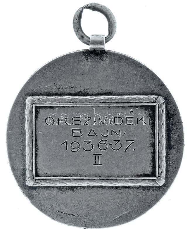 1937. "Magyar Labdarúgók Szövetsége 1901 / Orsz. Vidéki Bajn. 1936-37 - II." kétoldalas, jelzett Ag labdarúgó díjérem "SGA" gyártói jelzéssel. Az országos amatőrbajnokság egyenes kieséses rendszerében, amelyet a kerületi bajnokok számára szerveztek, a Diósgyőr 1932 után ismét a Győri ETO-val nézett farkasszemet, azonban az ETO most is legyőzte a diósgyőrieket, összesítésben 4-2-re. Így az ezüstérem a diósgyőri játékosok nyakába került, a Győr pedig feljutott az NB I-be. (19,08g/0.800/35x45mm) T:XF patina