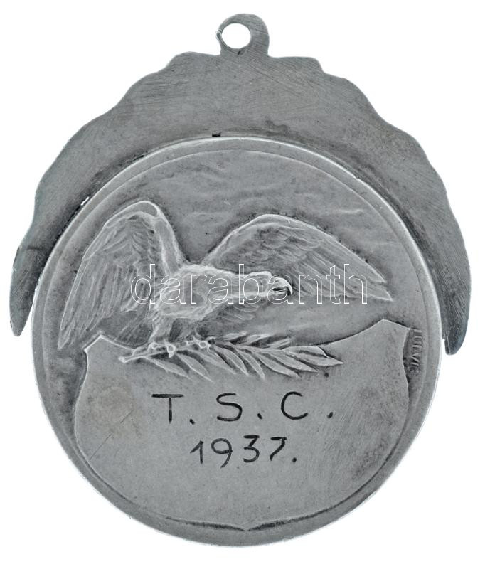 1937. "TSC (Tatabányai Sport Club) 1937" kétoldalas, ezüstözött kerékpáros díjérem "LE" jelzéssel (41x43mm) T:AU,XF