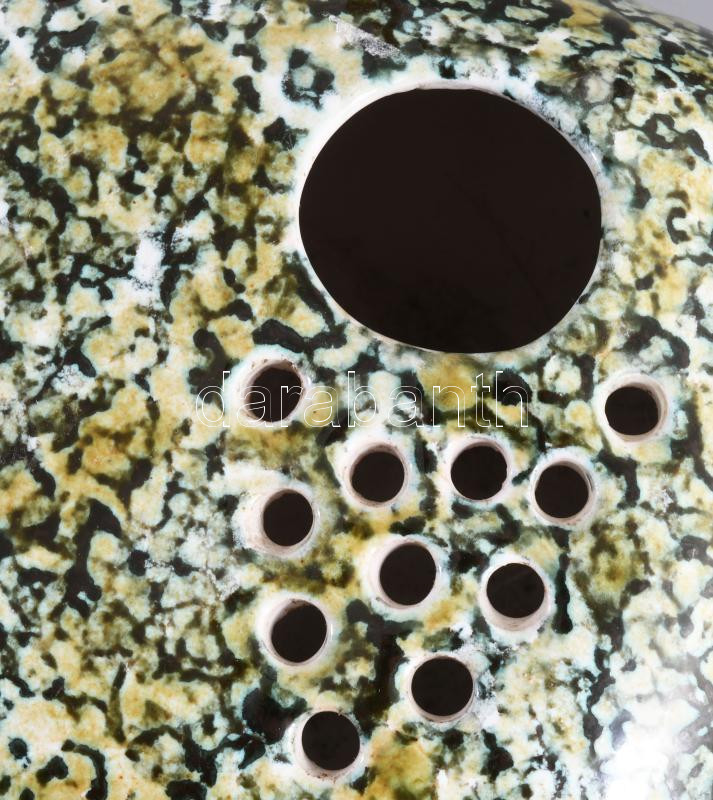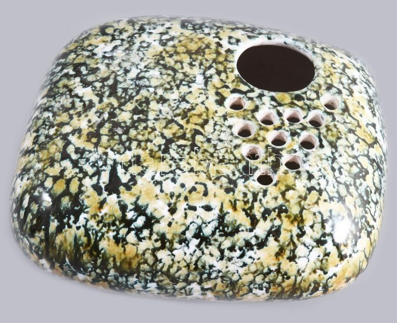 Leírás: Ikebana váza. Komlós Testvérek terve alapján. Mázas kerámia, jelzett, hibátlan, 17x15 cm