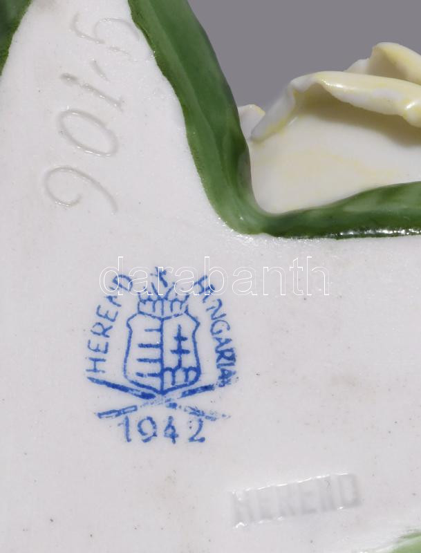 Leírás: Herendi sárga rózsa. Jelzett, minimális pattogzással, 8x8,5 cm