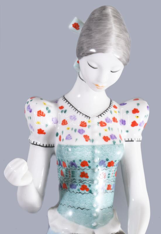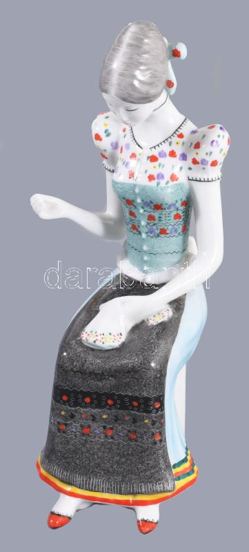 Leírás: Hollóházi Varró Matyónő. Terv.: Torma Istvánné. Jelzett, hibátlan, m: 23,5 cm
