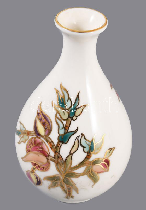 Zsolnay aranykontúrozott virágmintás kisváza. Jelzett, hibátlan, m: 11... https://www.darabanth.com/hu/518-Filatelia-kepeslap-numizmatika-mutargy-konyv-papirregiseg-ekszer-aukcio/524.0/Porcelan-keramia-uveg/Porcelan~83/Zsolnay-aranykonturozott-viragmintas-kisvaza-Jelzett-hibatlan-m-11-5-cm~II3514261