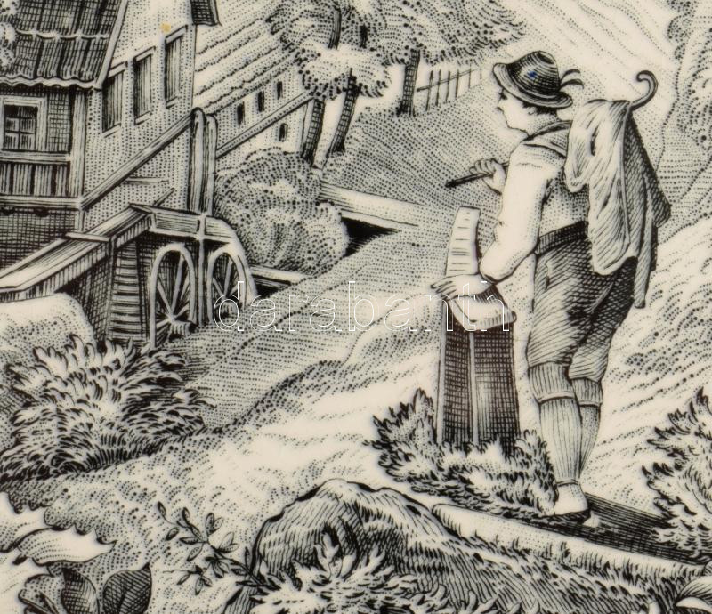 Leírás: cca 1900 Villeroy & Boch tál életkép jelenettel, jelzett, hibátlan, mázrepedéssel, d: 19,5 cm