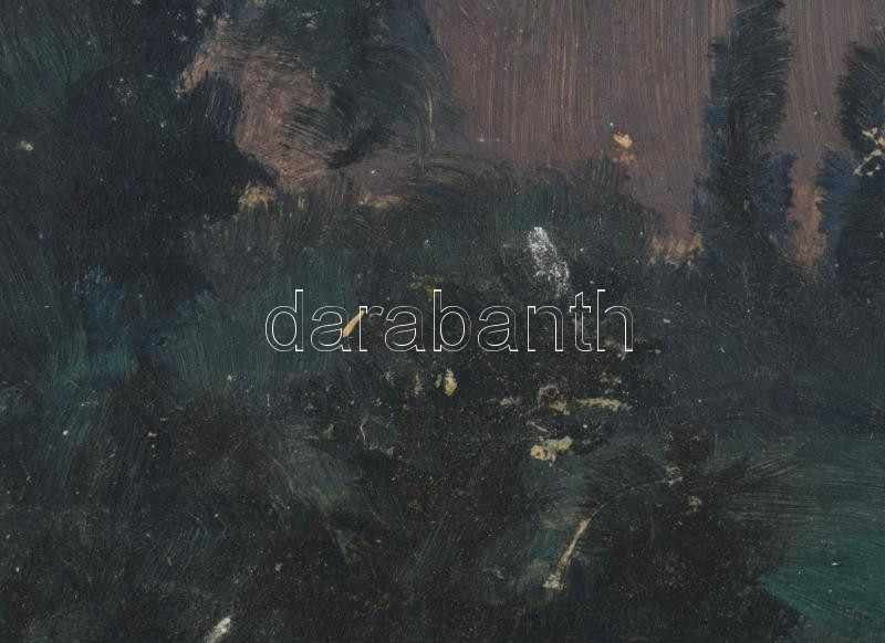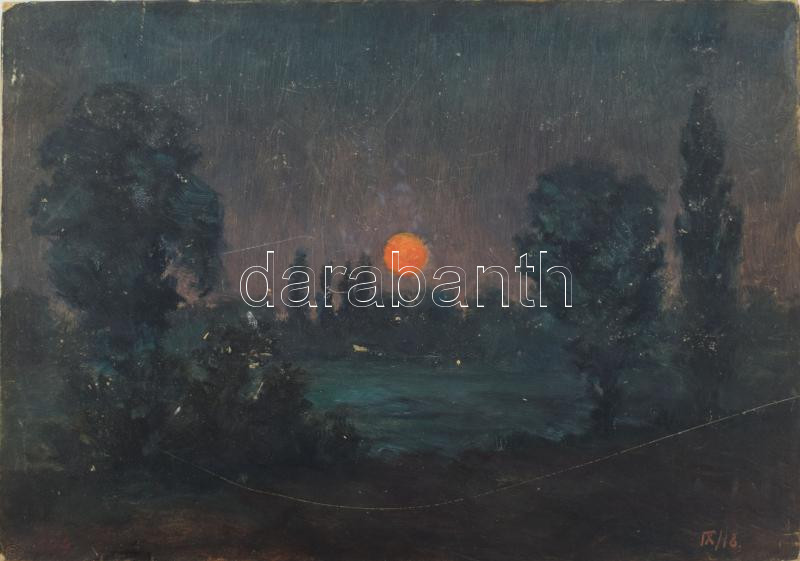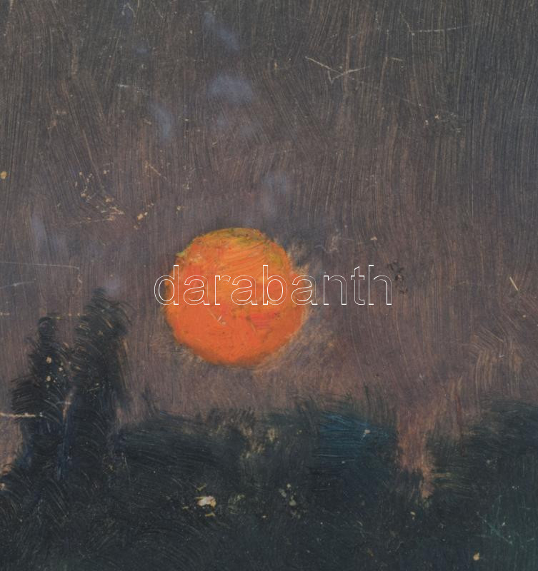 Keleti (Kelety) Gábor (1870-?): Naplemente, olaj, karton, jelzés nélkül, bal alsó és jobb alsó sarkában autográf felirattal, apró felületi sérülésekkel, 24×34 cm