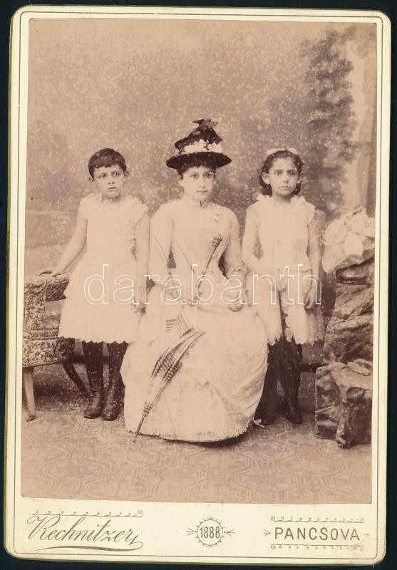 1888 Anya gyermekeivel, keményhátú fotó Rechnitzer pancsovai műterméből, 16,5×10,5 cm