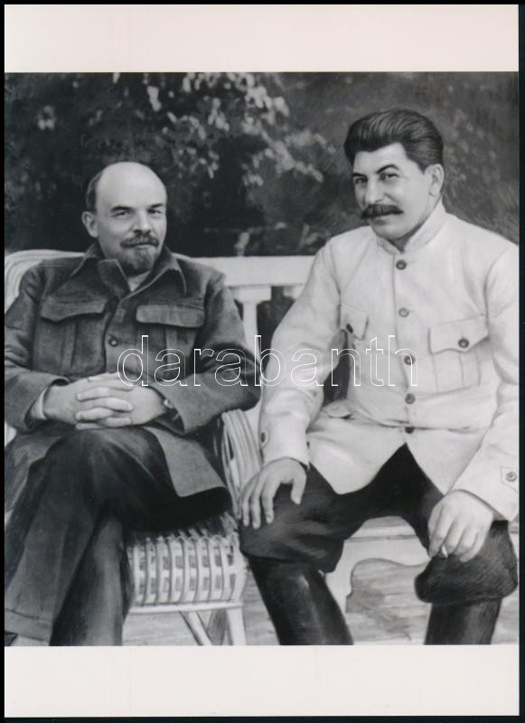 1922 Lenin és Sztálin közös felvétele, amely Gorkijban készült, a propaganda sajtó számára erősen retusált, 1 db modern nagyítás, jelzés nélkül, 21x15 cm
