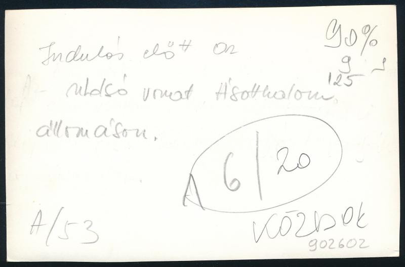 Indulás előtt az utolsó vonat Ásotthalom állomáson, hátoldalon feliratozott fotó, 9×14 cm