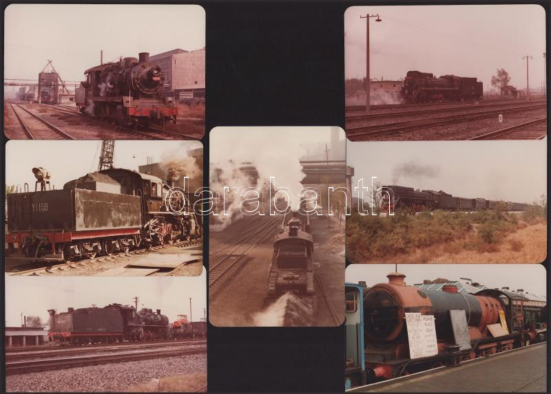 Kínai mozdonyok, 7 db hátoldalon feliratozott színes fotó, 10×15 cm