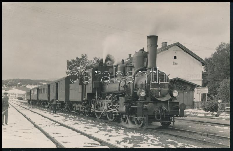 cca 1940 Wies vasútállomás mozdonnyal, Fialovits Béla felvétele, pecséttel jelzett, 9×14 cm