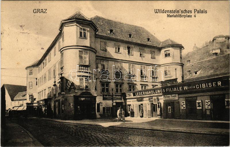 Graz, Wildenstein'sches Palais, Mariahilferplatz 4., Lederhandlungs - Filiale Wilhelm Giviser, Franz Roskozny / palace, shops (small tear)